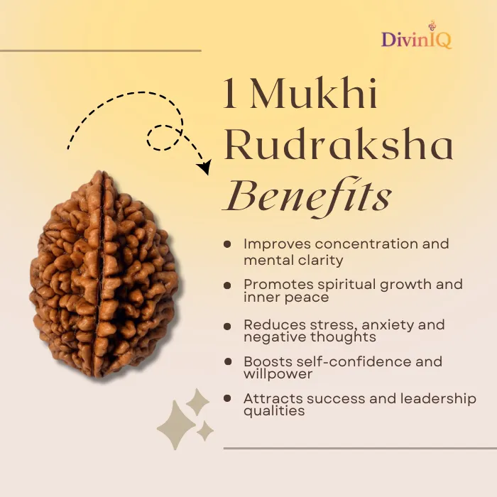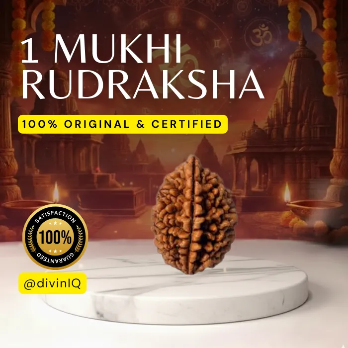 The 1 Mukhi Rudraksha, also known as Ek Mukhi Rudraksha, is considered the rarest and most powerful bead. It symbolizes Lord Shiva and represents ultimate truth, enlightenment, and liberation. Wearing this sacred bead is believed to bring clarity of mind, spiritual growth, and freedom from worldly attachments.